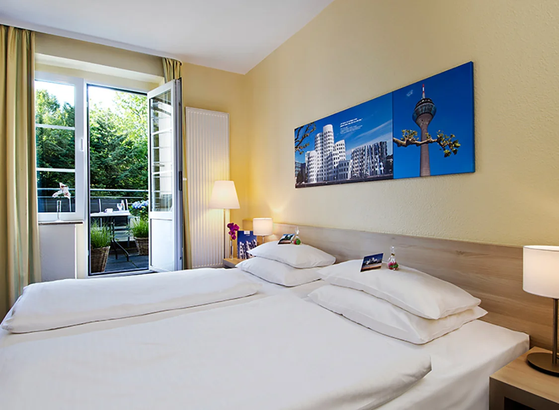 - Toplocatie: direct aan de Hofgarten, niet ver van de Rijnpromenade en slechts 5 minuten lopen naar de historische binnenstad van Düsseldorf