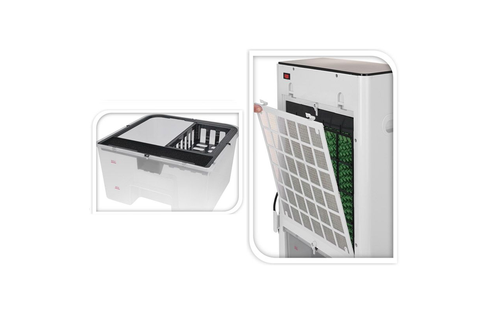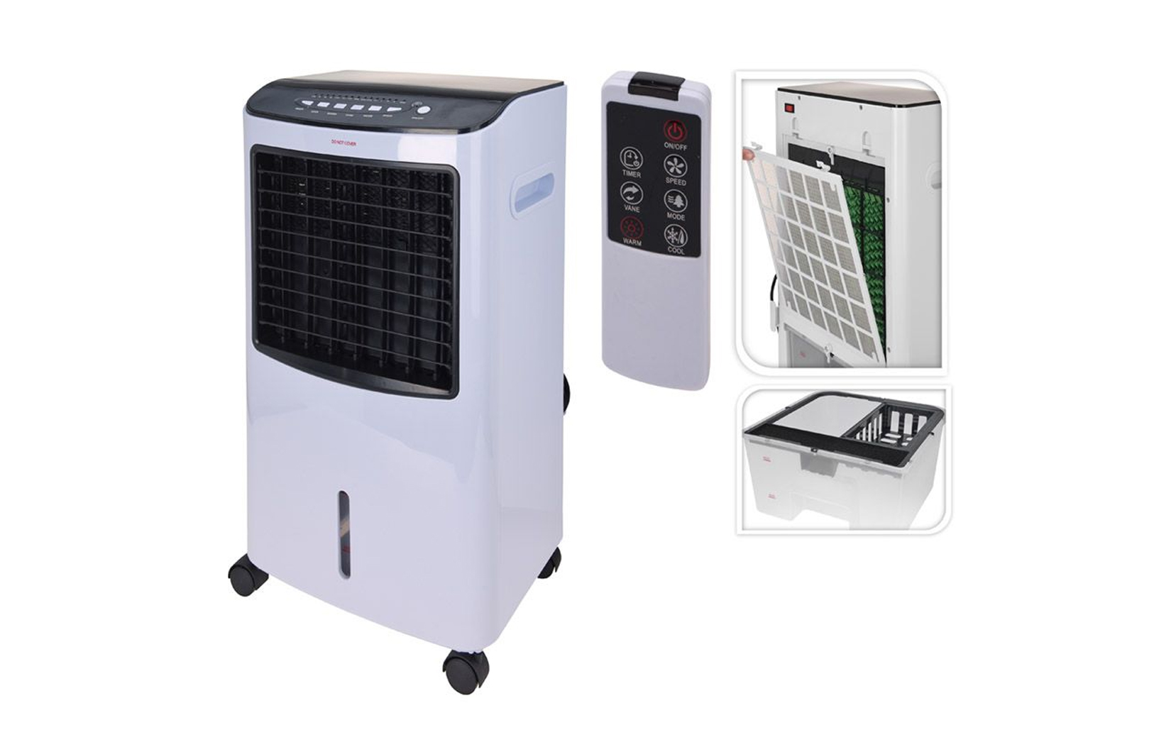 Deze multifunctionele aircooler biedt niet alleen verfrissende koeling, maar ook een krachtige verwarmingsfunctie voor koude dagen.