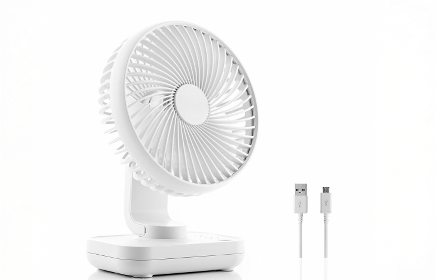 Hou het fris en comfortabel met de Fanrec oplaadbare bureauventilator Ø5,4" – een compacte, stille en efficiënte ventilator, ideaal voor op kantoor, thuiswerk, reizen of buitengebruik.