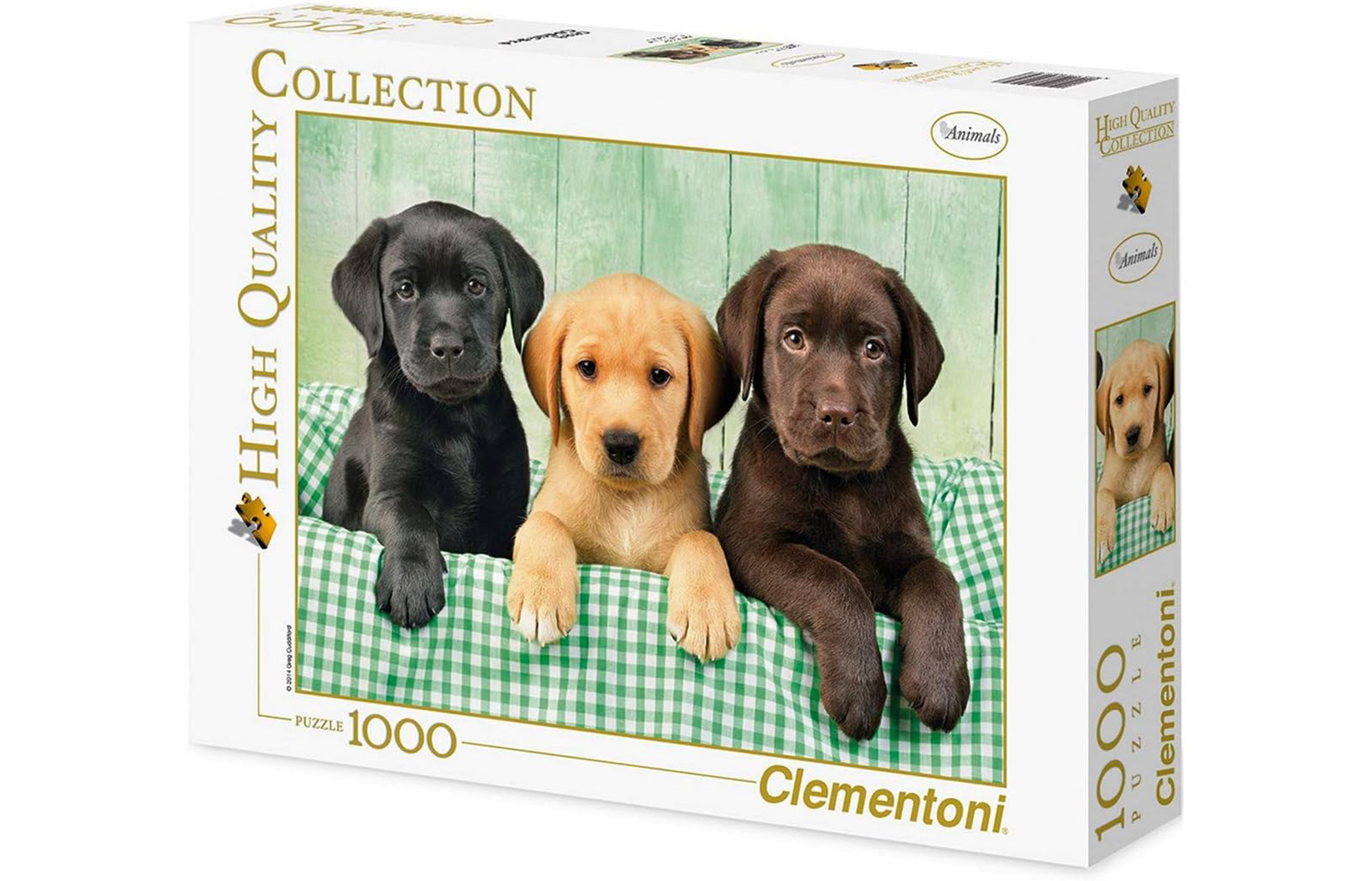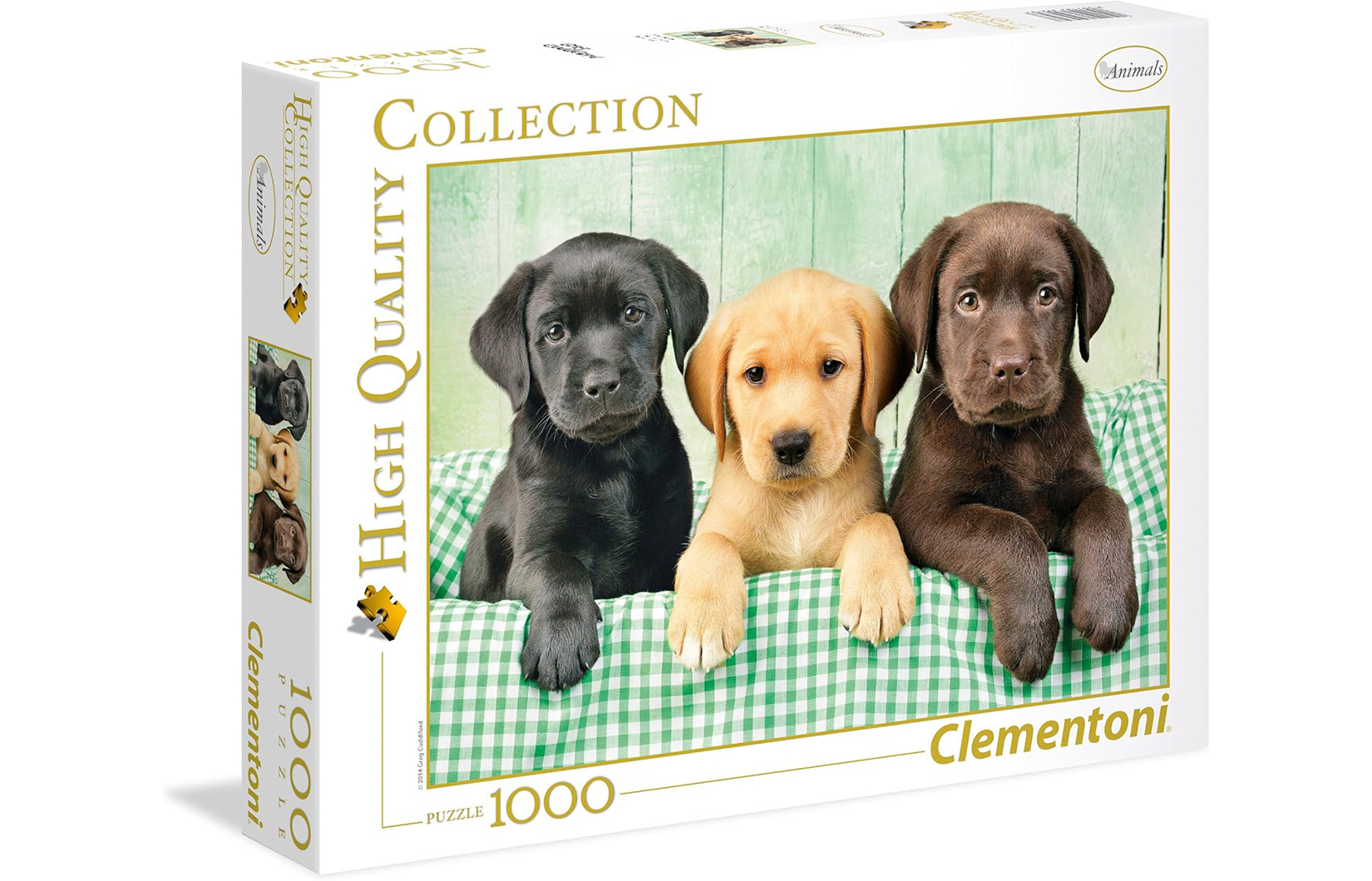 Beleef urenlang puzzelplezier met de kleurrijke Clementoni legpuzzel ‘Drie Labradors’ – 1000 stukjes vol schattige labradors en warme, sfeervolle details!