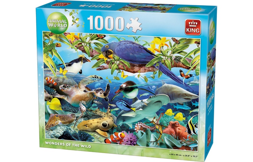 King legpuzzel ‘Wonders of the Wild’ – 1000 stukjes met een afbeelding van wilde dieren in hun natuurlijke omgeving, perfect voor puzzelliefhebbers en natuurfans!