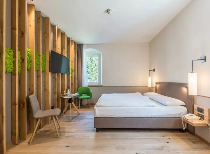 Dit hotel biedt een perfecte combinatie van comfort en natuurbeleving. De ruime kamers zijn modern ingericht en hebben een eigen badkamer met bad of douche.
