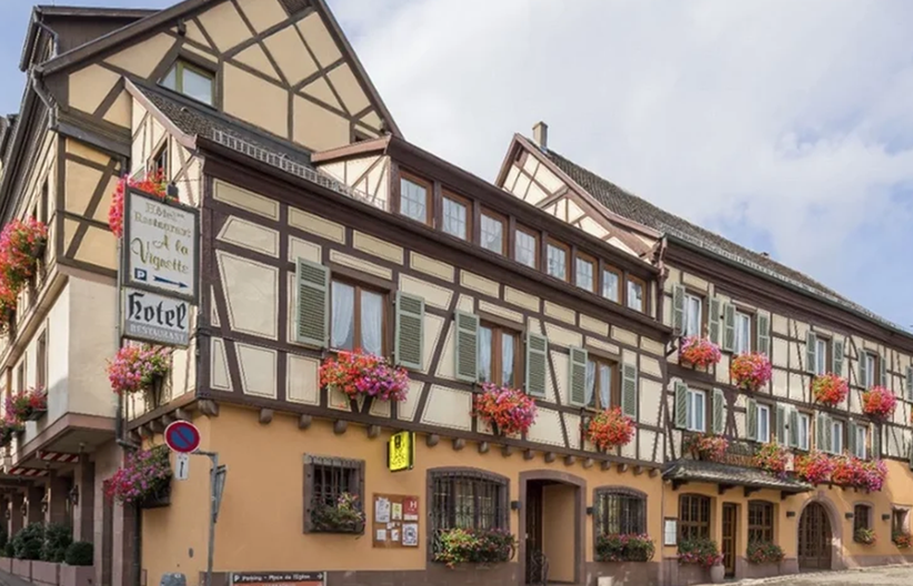 Welkom in Hotel À la Vignette, een sfeervol vakwerkhuis gelegen in het pittoreske Saint-Hippolyte, midden in de glooiende heuvels van de beroemde Elzasser wijnroute.