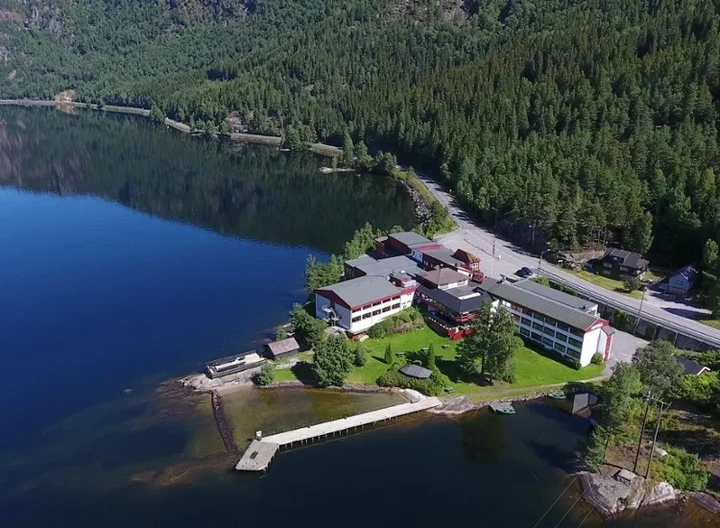 Het Revsnes hotell AS is een charmant en gastvrij hotel, prachtig gelegen aan de oever van het Byglandsfjord in het idyllische Setesdalen, in het zuiden van Noorwegen. Deze regio staat bekend om haar indrukwekkende natuur, rust en ruimte, en vormt het perfecte decor voor een ontspannen vakantie aan het water.
